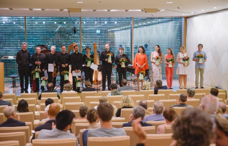 Gala des lauréats de la promotion 2016 de la Fondation Michelle (Marlène Duhr, Cyprien Keiser, Claude Kraus, Stephany Ortega, Chanel Perdichizzi, Valery Verstiuc, Anaëlle Ziadi et l’ensemble United Instruments of Lucilin sous la direction de David Reiland) / Auditoire de LALUX Assurances / 1er juin 2017 / Photo : © Léa Giordano
